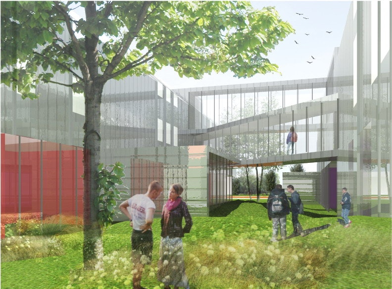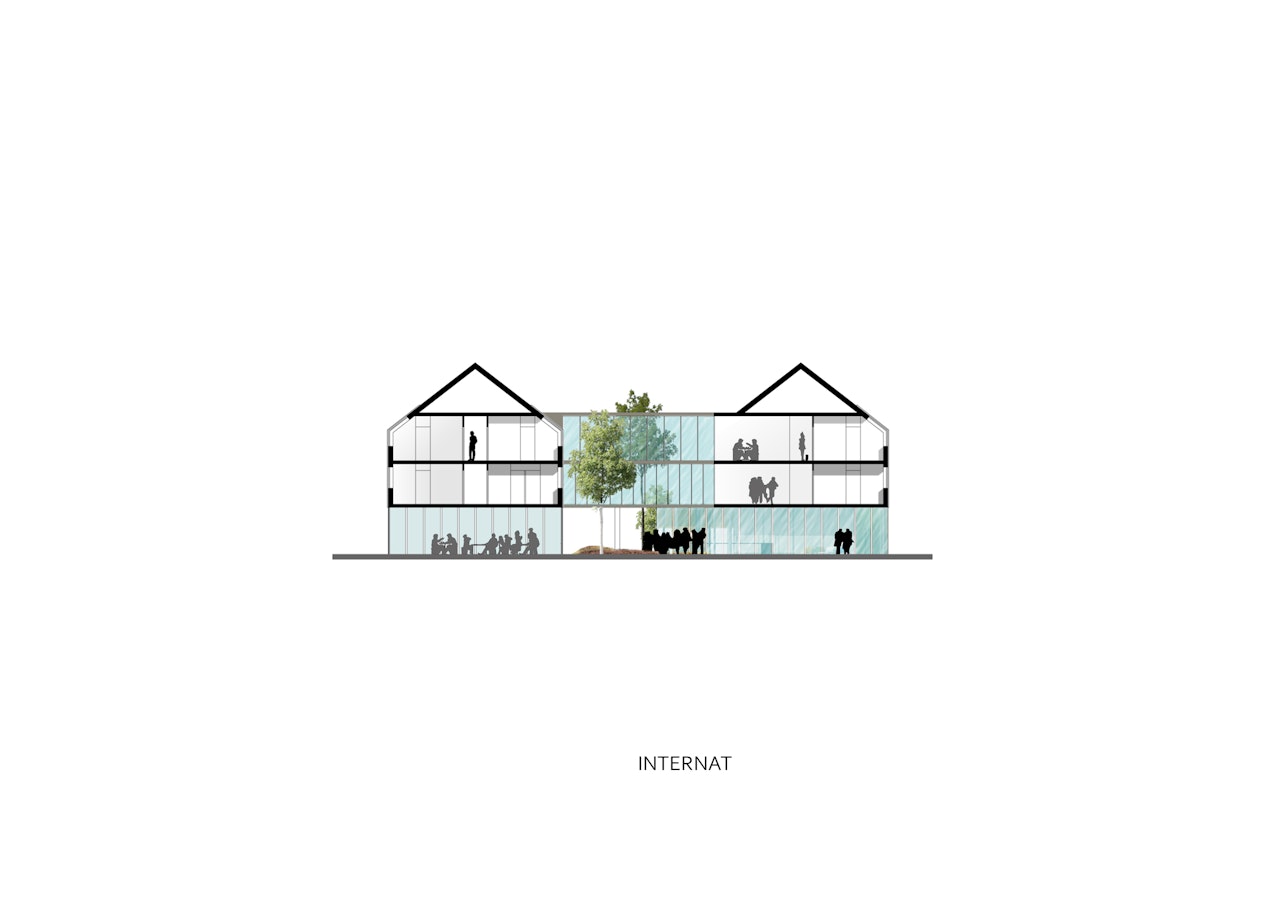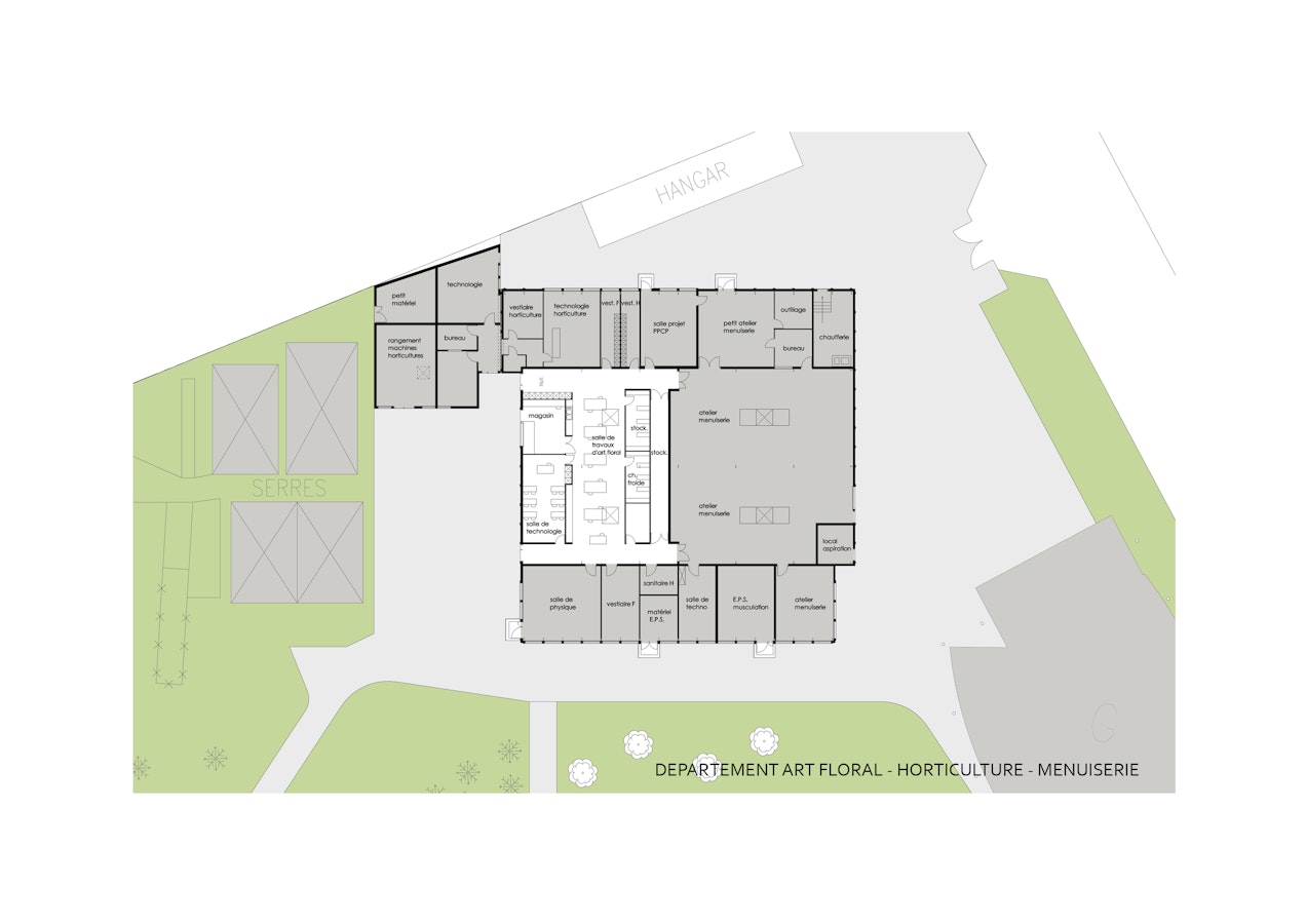 Notre proposition s’établit donc dans une négociation subtile de ce programme avec le site, dans le respect des contraintes qu’il impose, (occupation antérieure, histoire du lieu, destination des locaux, fonctionnalités, cibles Hqe…), et dans l’écoute des attentes qu’il suggère ( mises en relation, ouverture, perspectives d’avenir, …).
