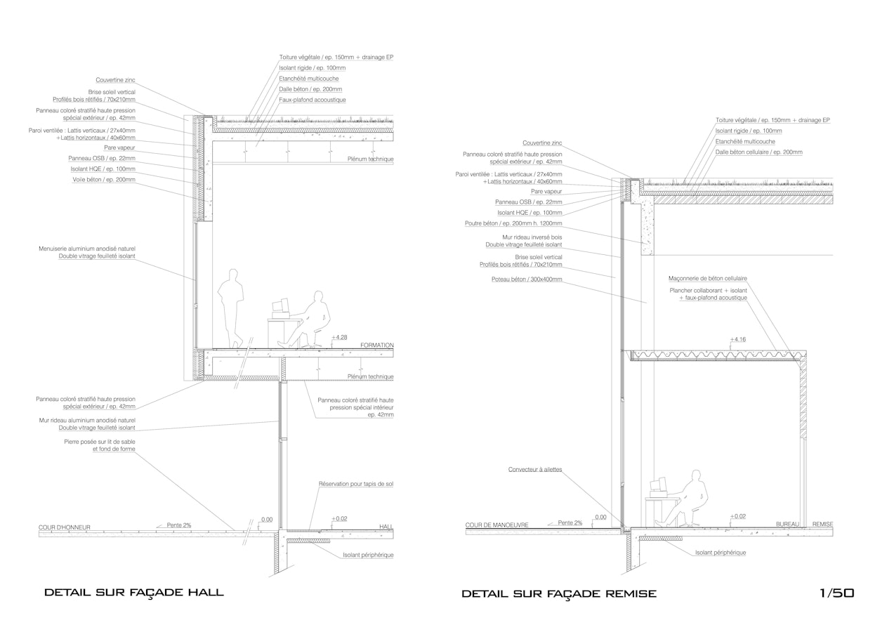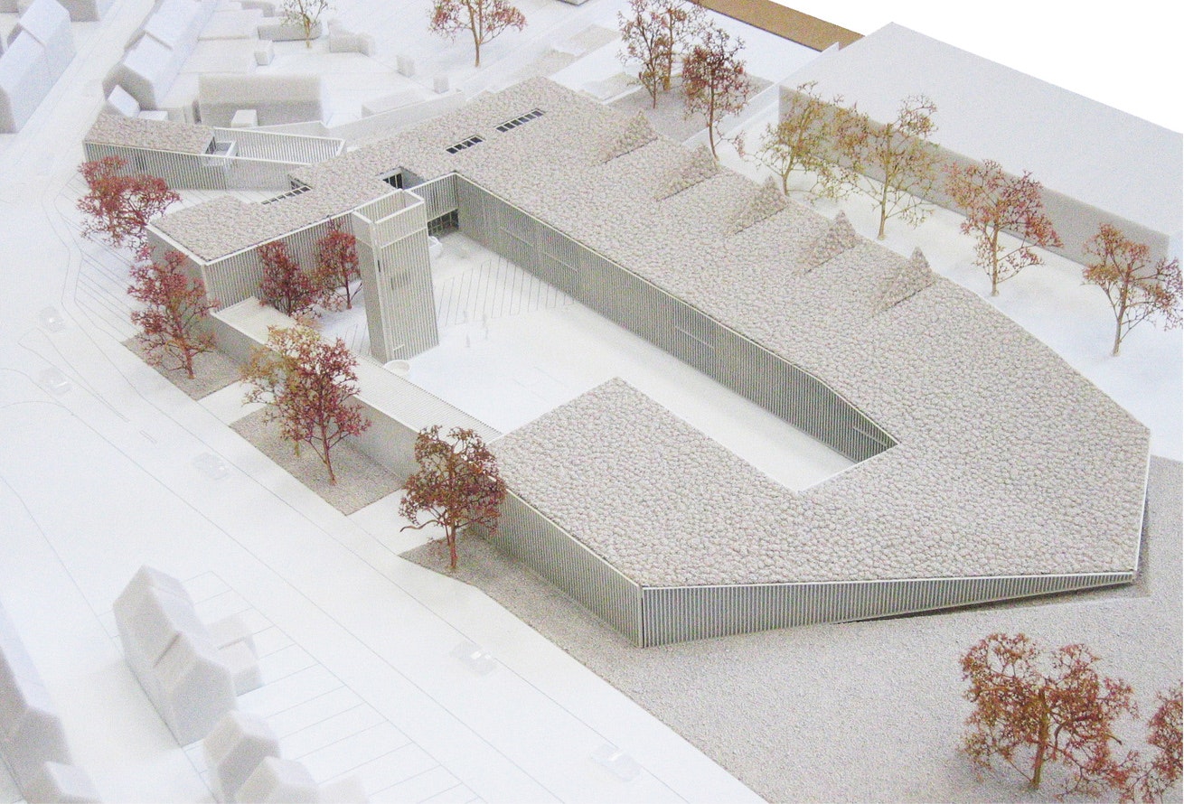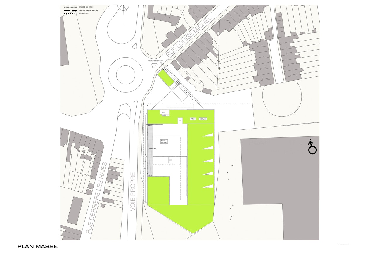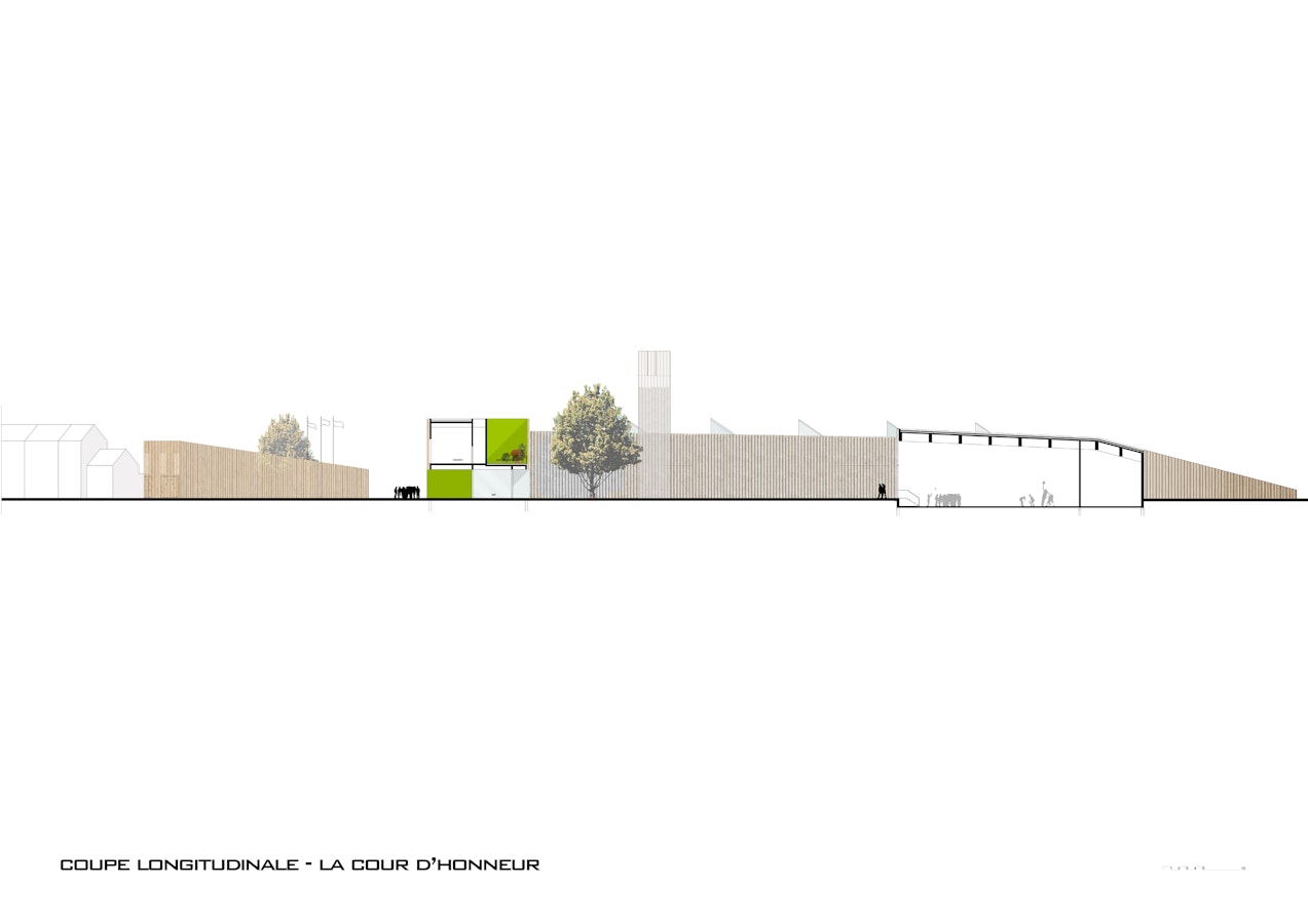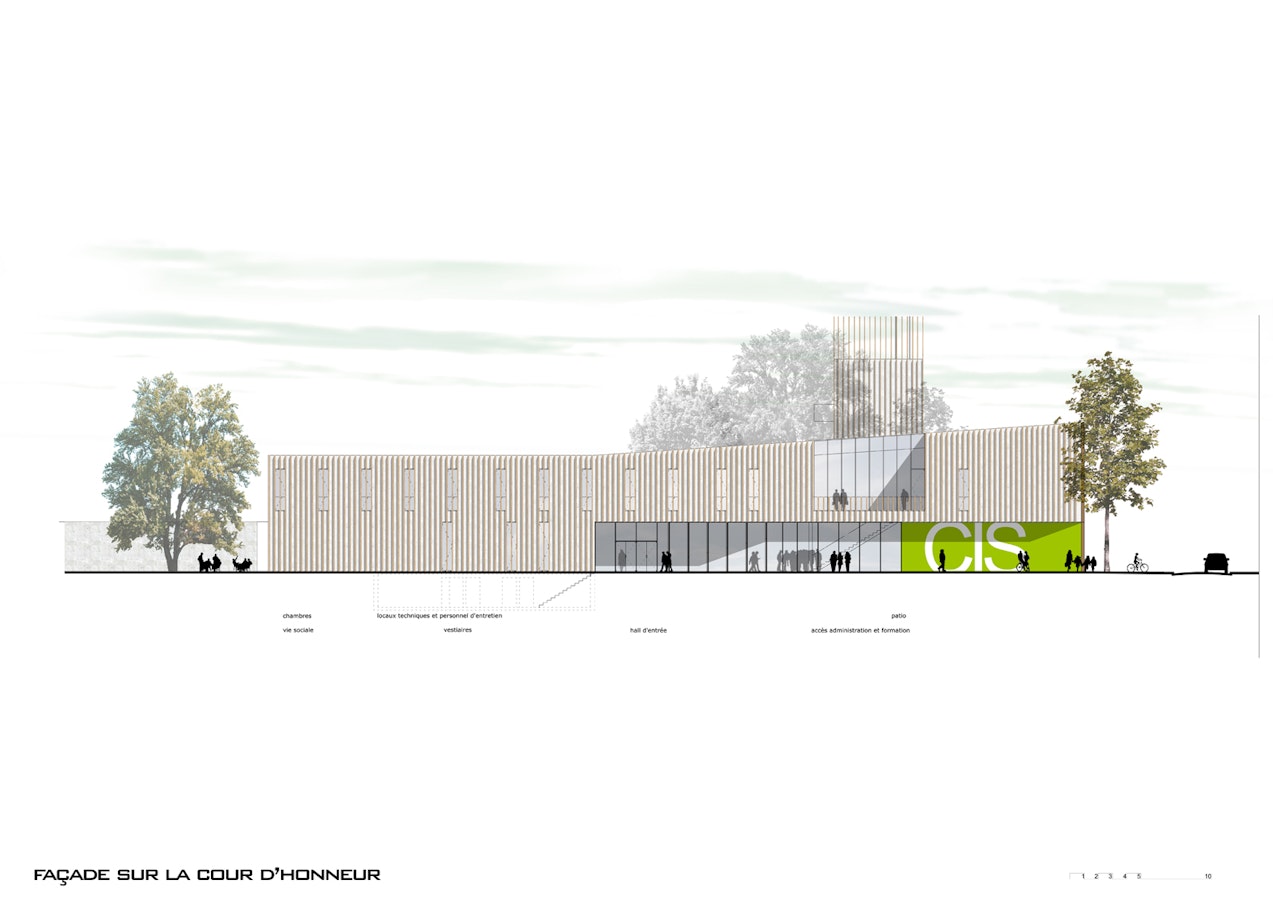 Par son gabarit R+1, associant des jeux de toitures végétalisées, en légères pentes, dans la perspective de la "coulée verte", caractéristique d’Anzin le projet s’inscrit "en douceur" dans son environnement.La qualification d’une place majeure ,ici la cour d'honneur ,valorise le rond-point et désigne l’entrée principale. Une image nouvelle de l’institution L'équipement affirme sa présence dans la ville par le jeu “plastique” de volumes différenciés.