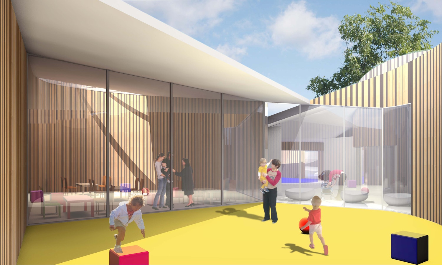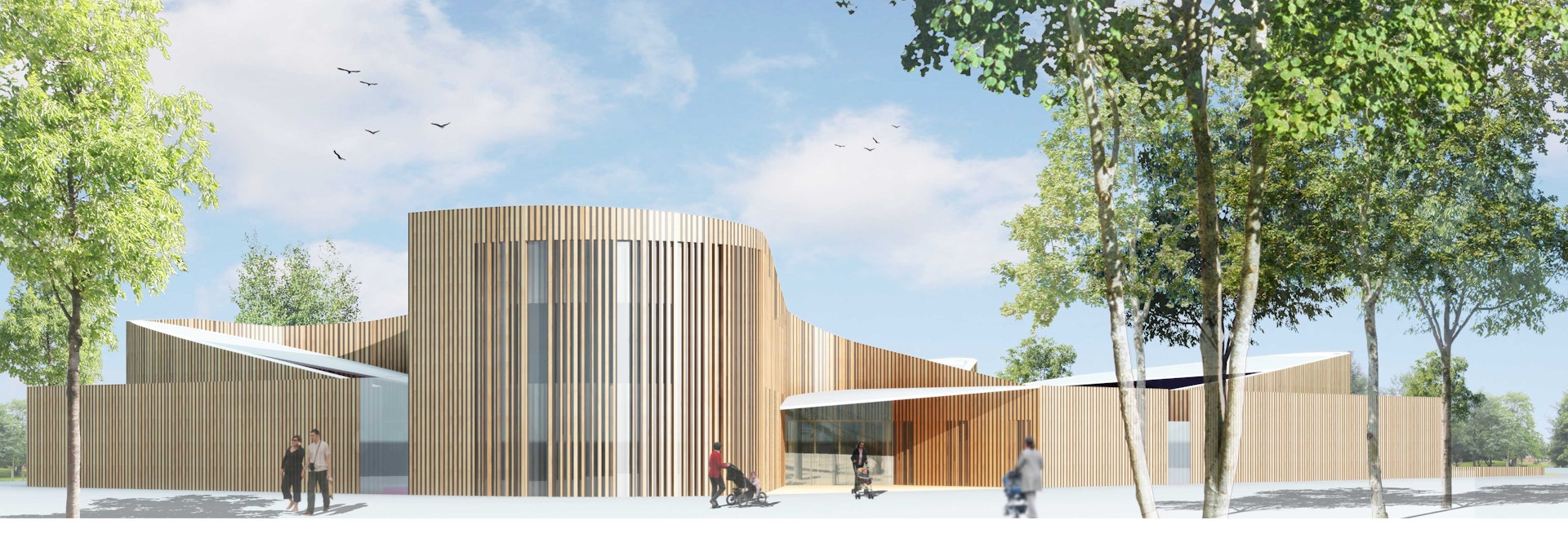 L’équipement est l’extension d’un bâtiment existant, mais doit conserver son autonomie fonctionnelle : Ainsi, une géométrie autonome réglée, calée sur un dessin en croix, contient dans ses ailes les différentes entités programmatiques réparties selon des critères fonctionnels d'orientations, de proximités, de livraisons.