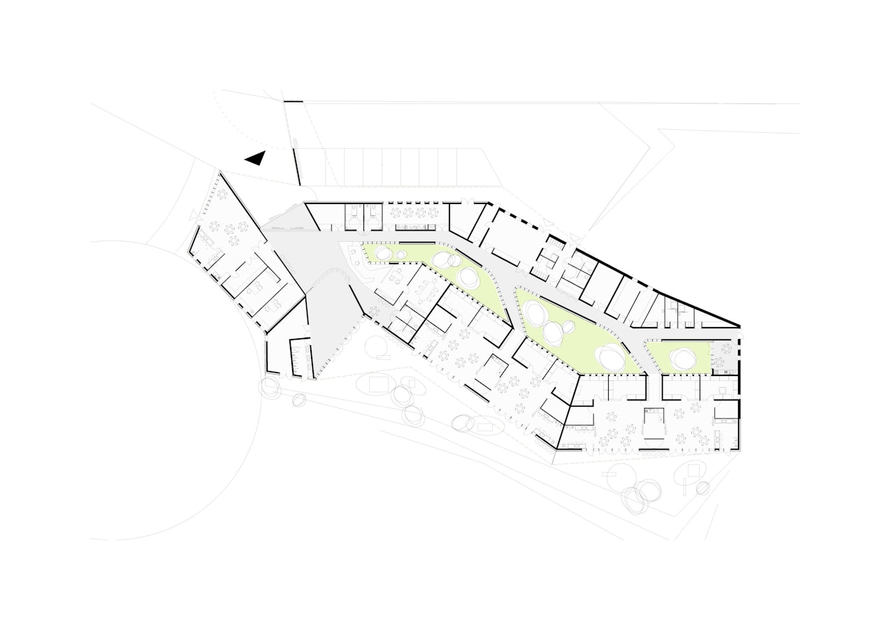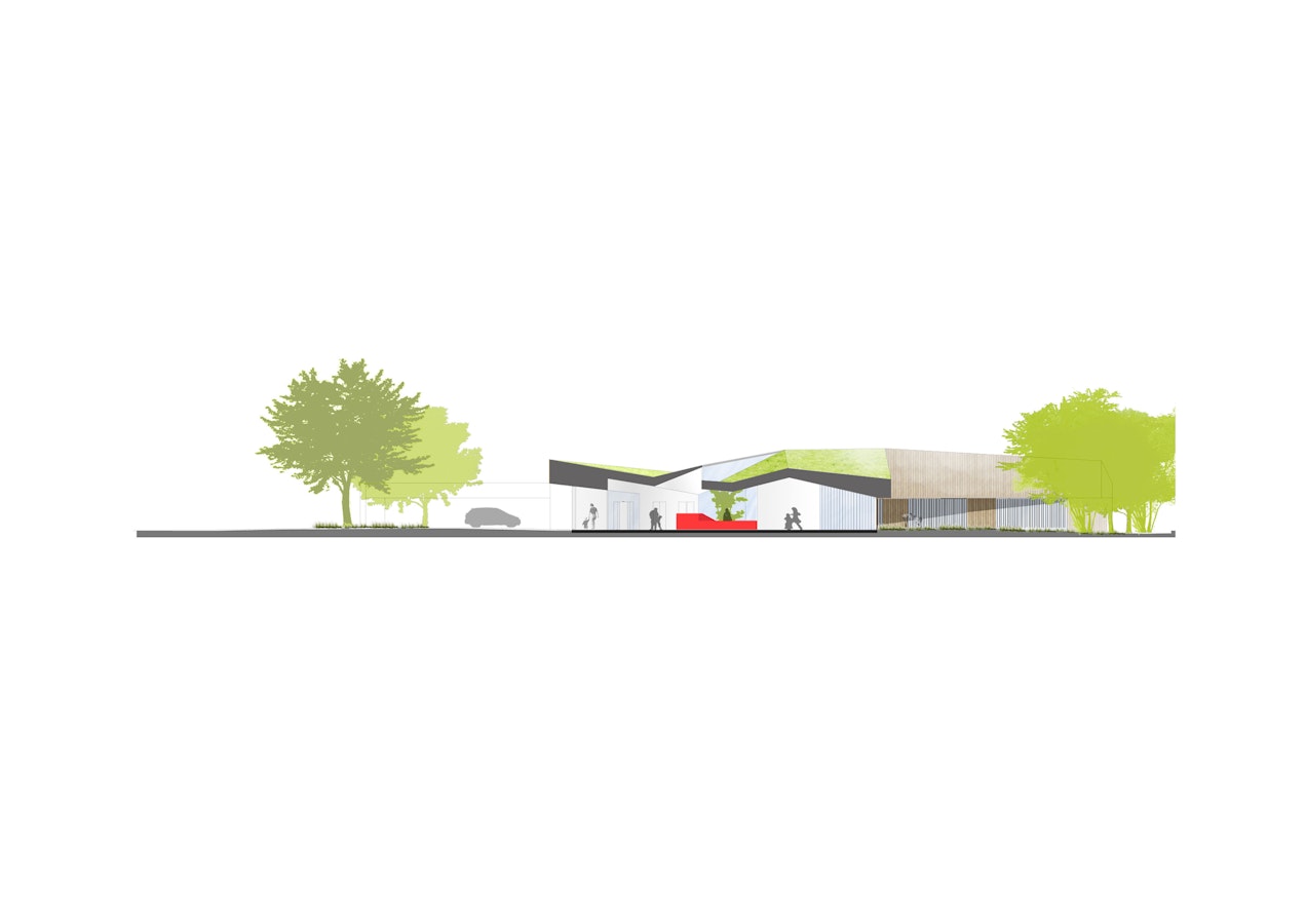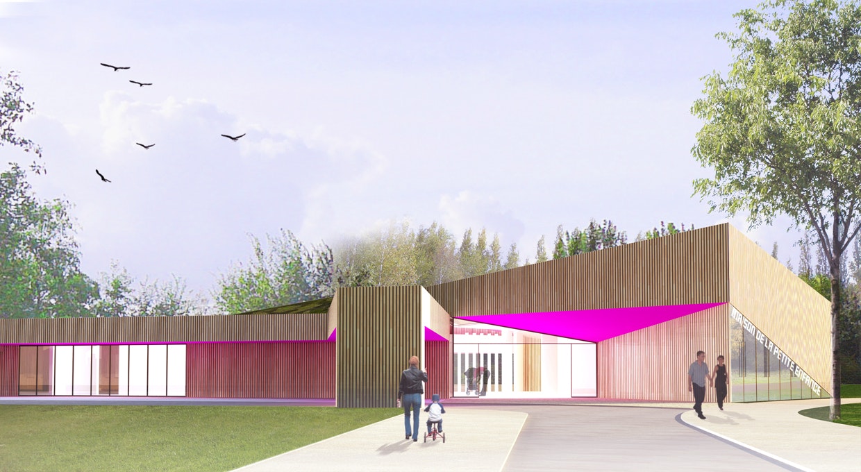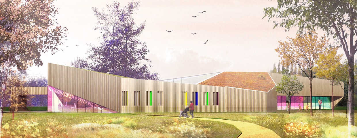 La crèche de Carvin s’implante en limite de la ville et forme à cet endroit la lisière d’un bois.