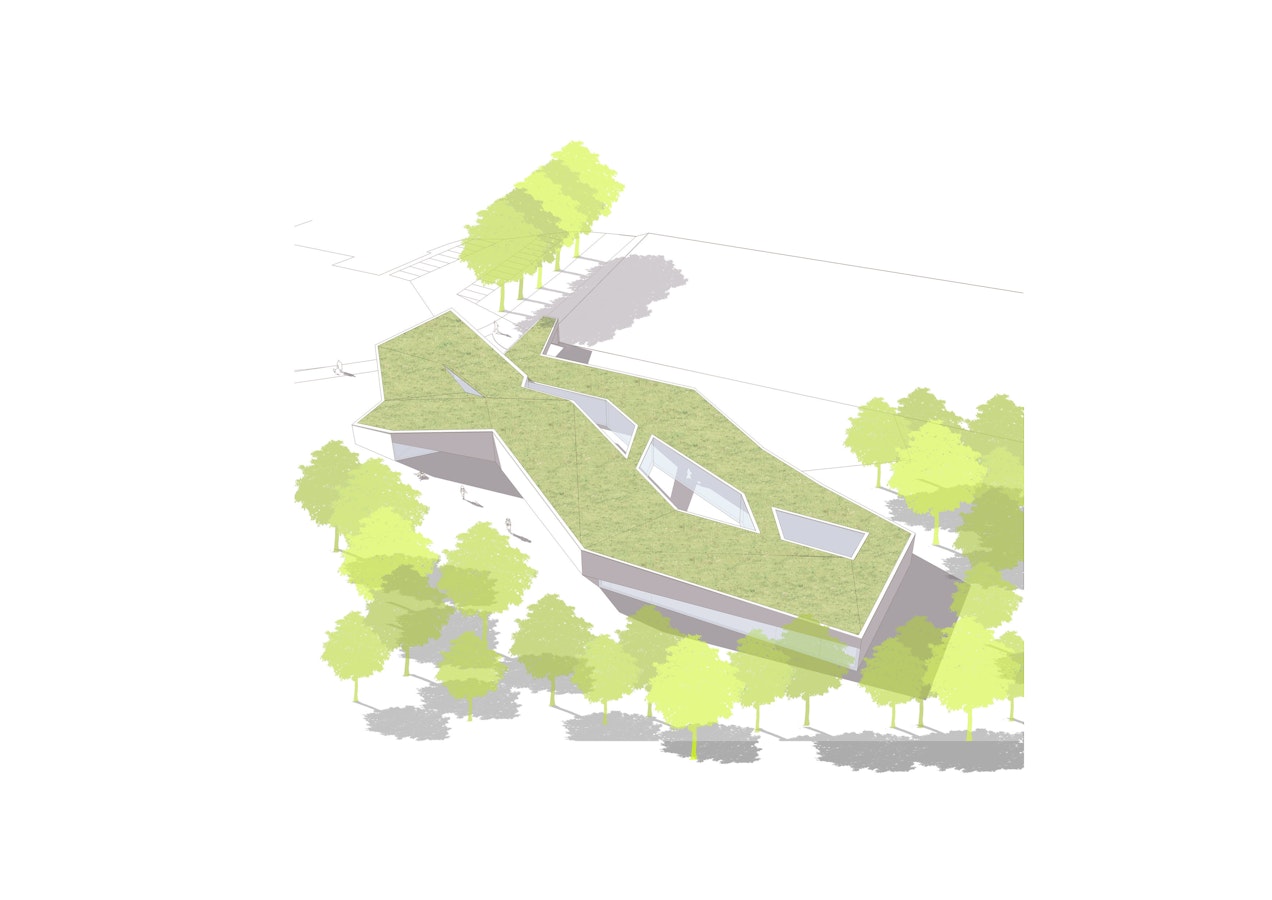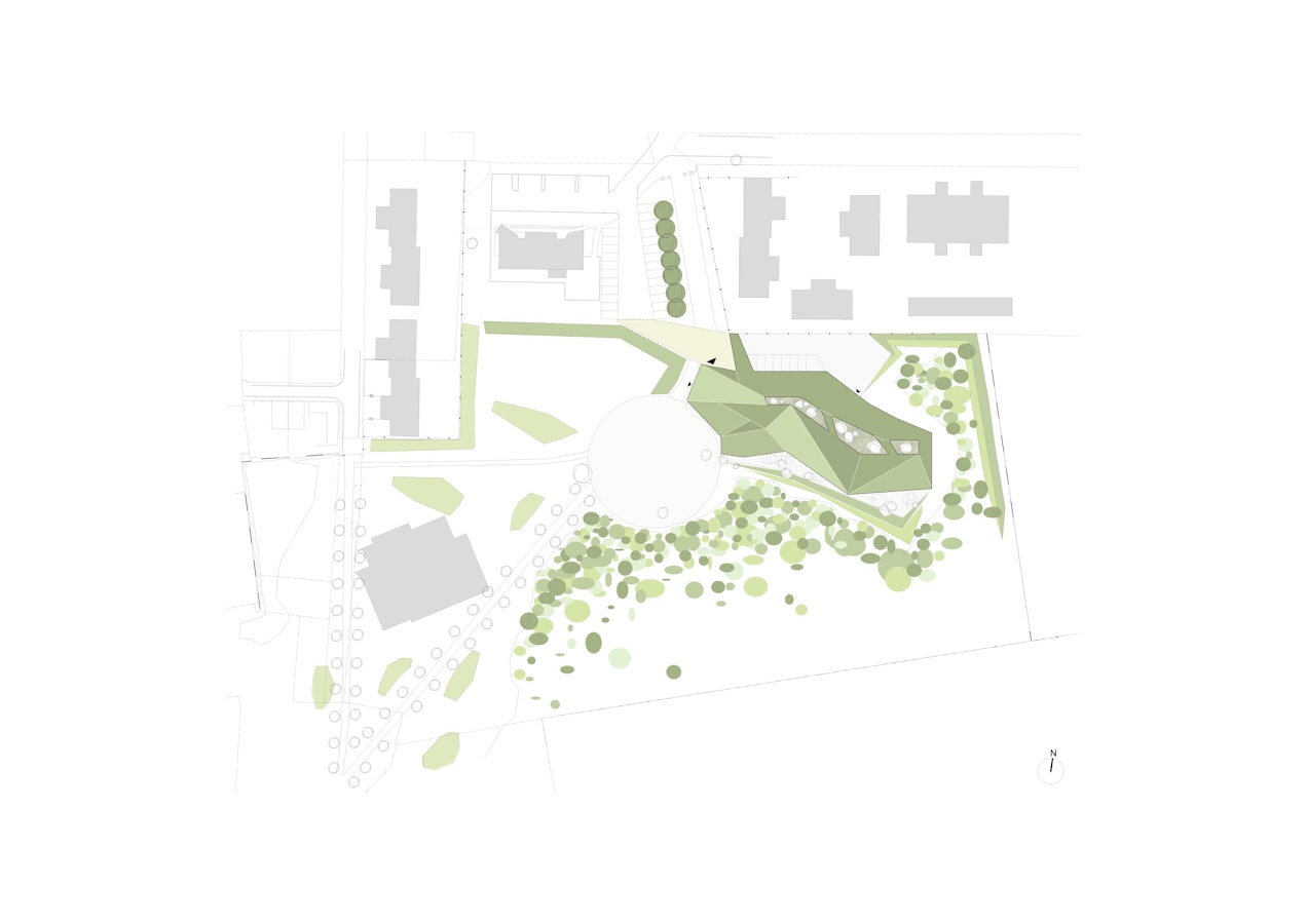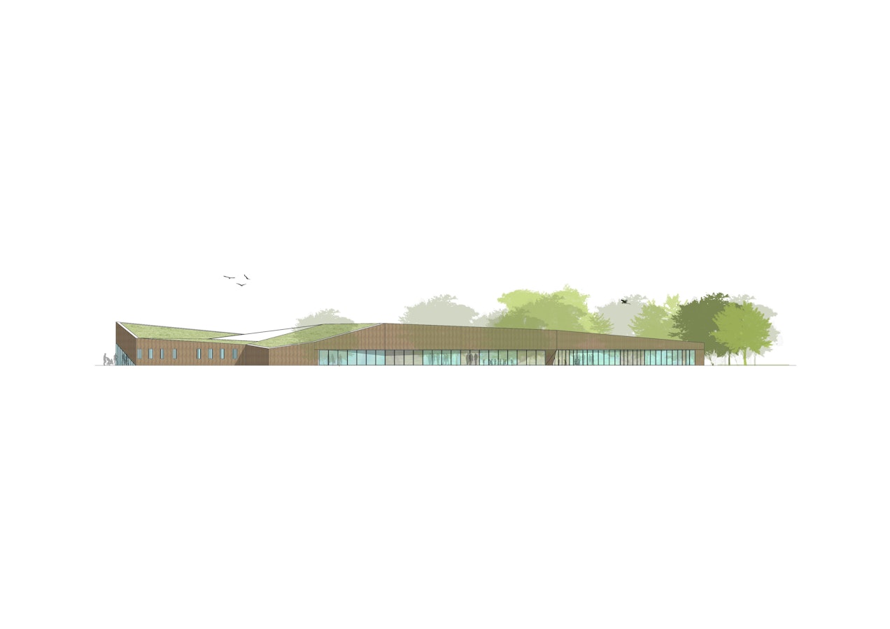 La crèche de Carvin s’implante en limite de la ville et forme à cet endroit la lisière d’un bois.