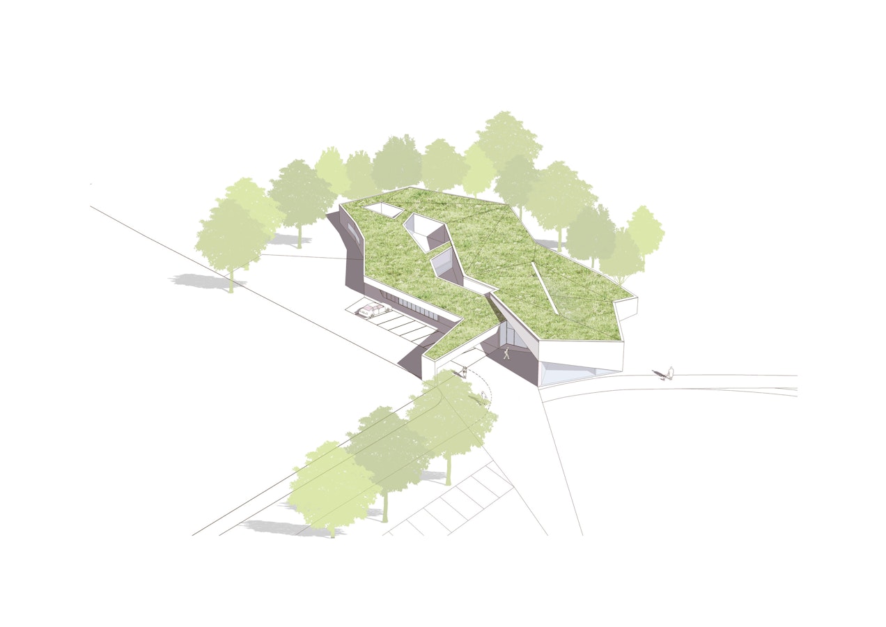 La matérialité et la forme de l’édifice reprend et domestique cette nature environnante.