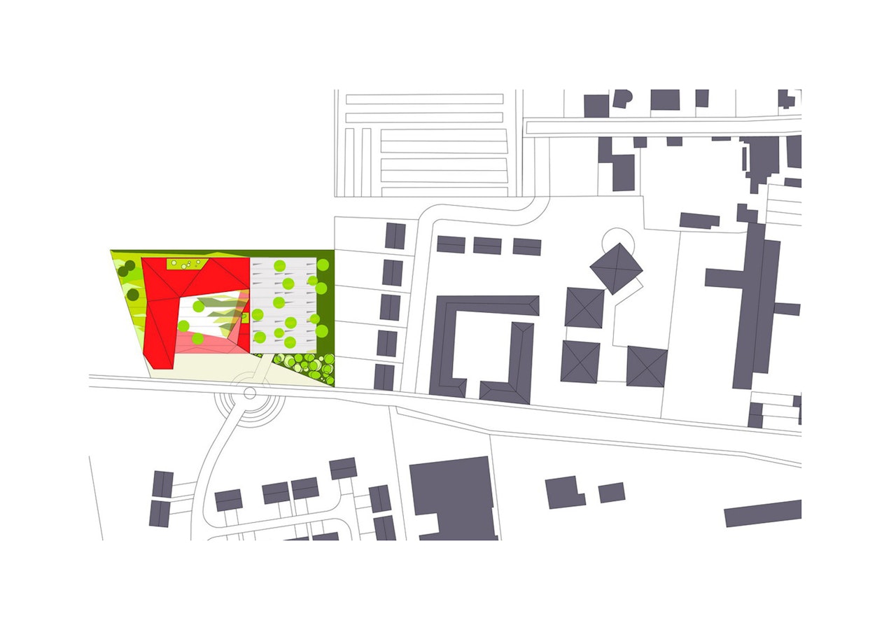 La médiathèque de Rouvroy s’implantera à la limite de la ville, dans un quartier en devenir. Elle regarde à l’ouest une vaste étendue de champs qui mettent en valeur ce paysage si caractéristique du Nord fait d’horizons, de terrils et d’urbanité basse.