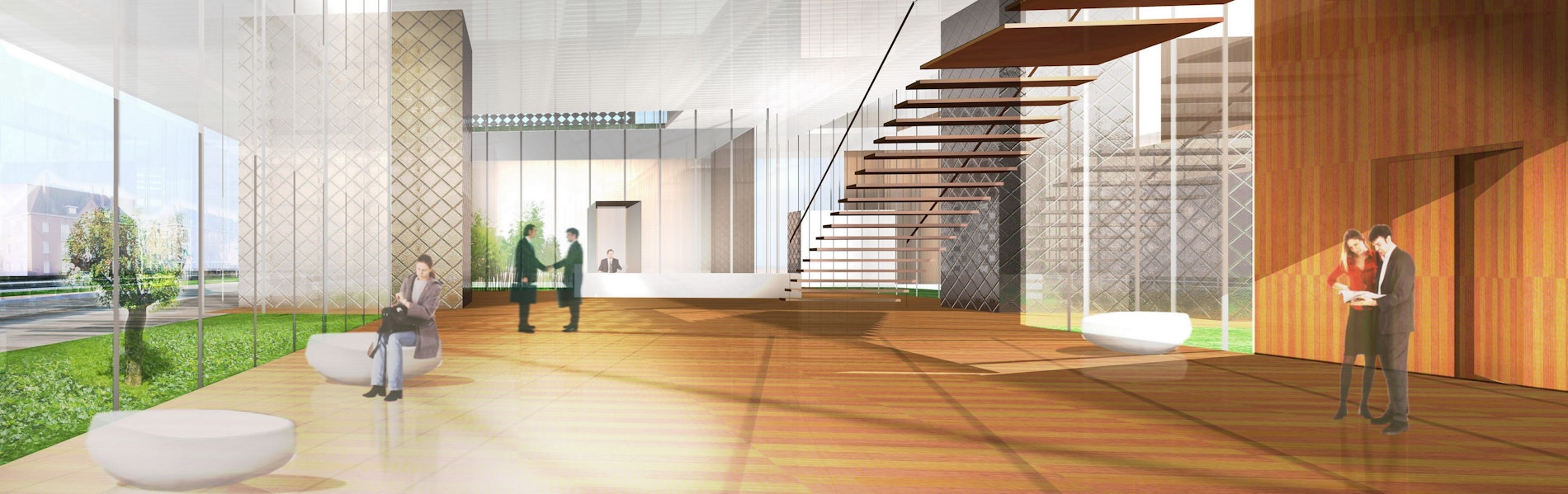 Cette recherche de monumentalité maîtrisée et contenue, et de lieux de travail agréables et valorisant est adaptée à l'idée que nous pouvons nous faire aujourd'hui de la justice. Elle assure dans ce projet une visibilité forte qui renseigne sur la mission que le tribunal de commerce accomplit dans le concert des institutions de la cité.