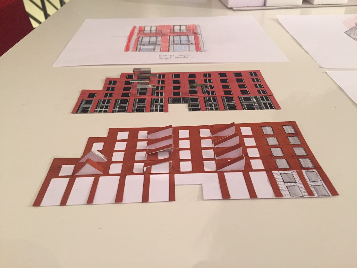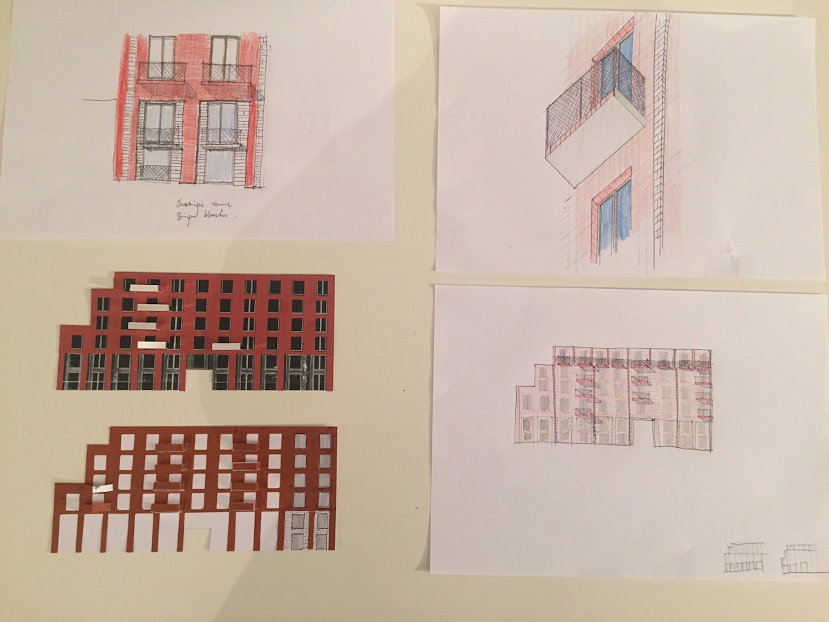 L’architecture de ces bâtiments se donne à lire comme un corps avec des bras en cadence avec des petits tours (les pavillons), à chaque fois là où le bras tourne à l’angle ou à mi- longueur.