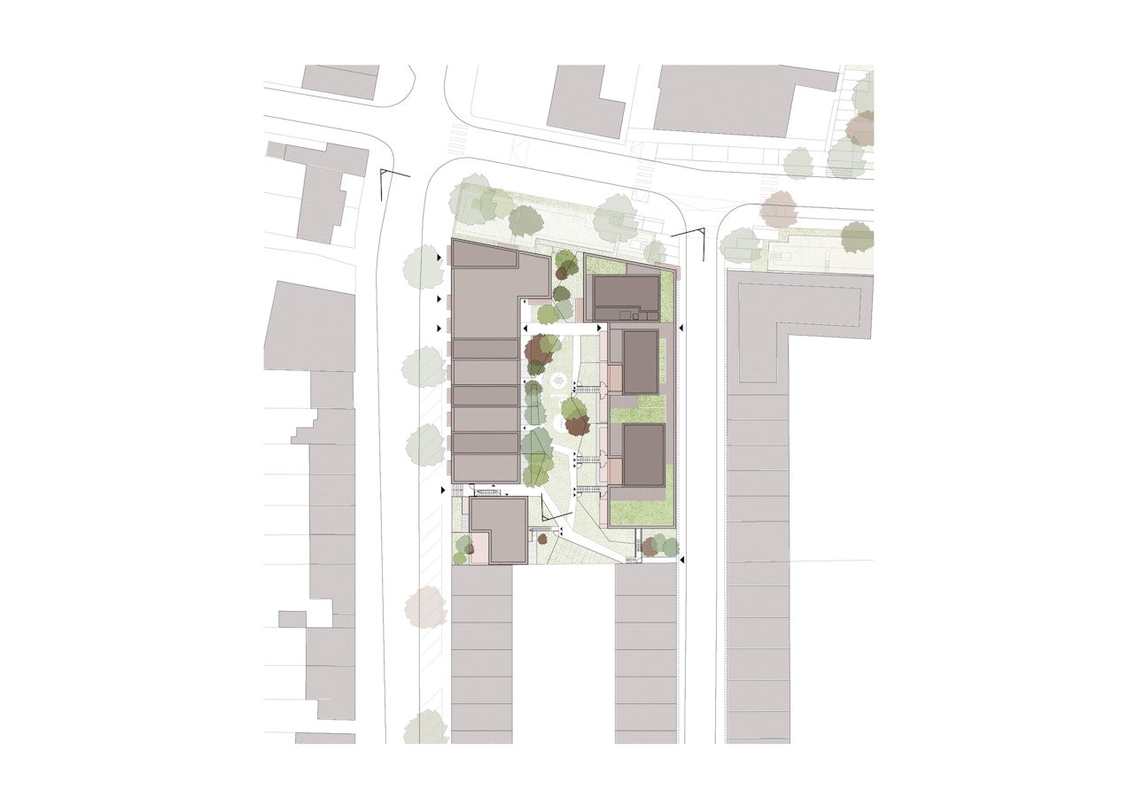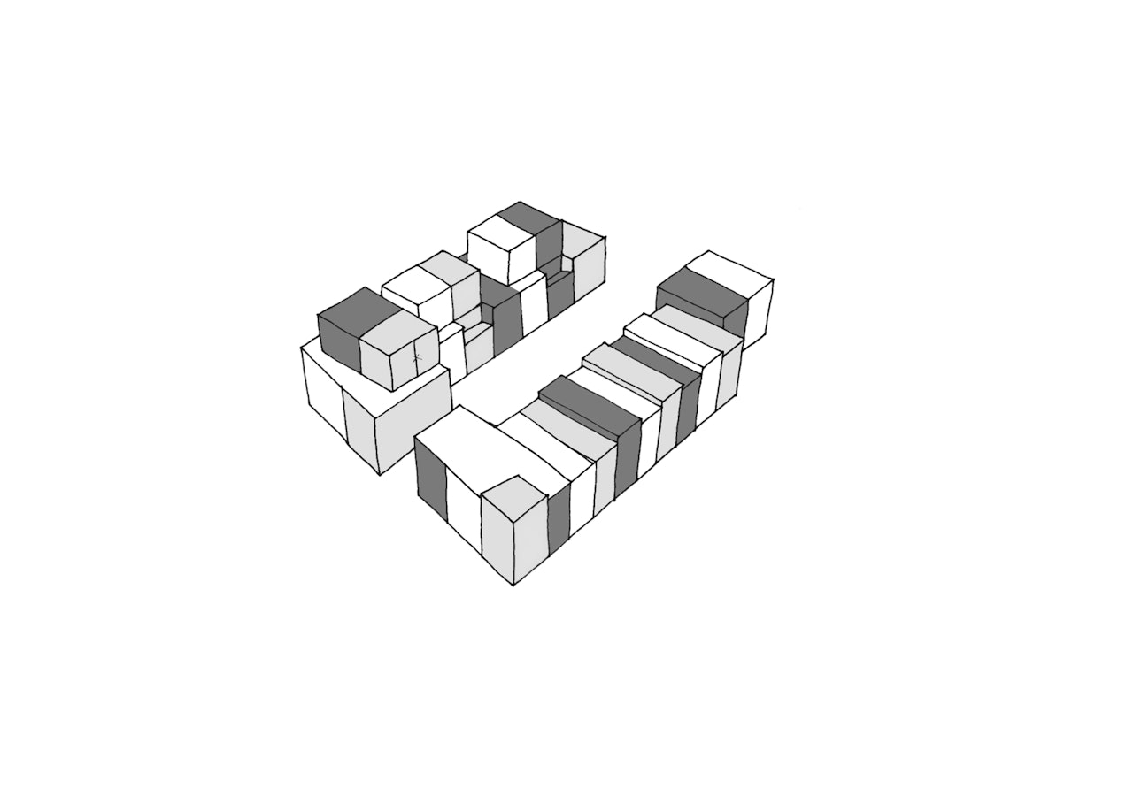 Les dispositifs de fragmentation et d’épannelage que nous mettons en place permettent de proposer une urbanité homogène ainsi qu’une architecture variée, à l’image du quartier fait de collectif et d’individualités. Ce projet est une réponse contemporaine dans le continuum bâti du Marais de Lomme dont le grain fin et particulier est constitué avant tout par des maisons de ville mitoyennes.
