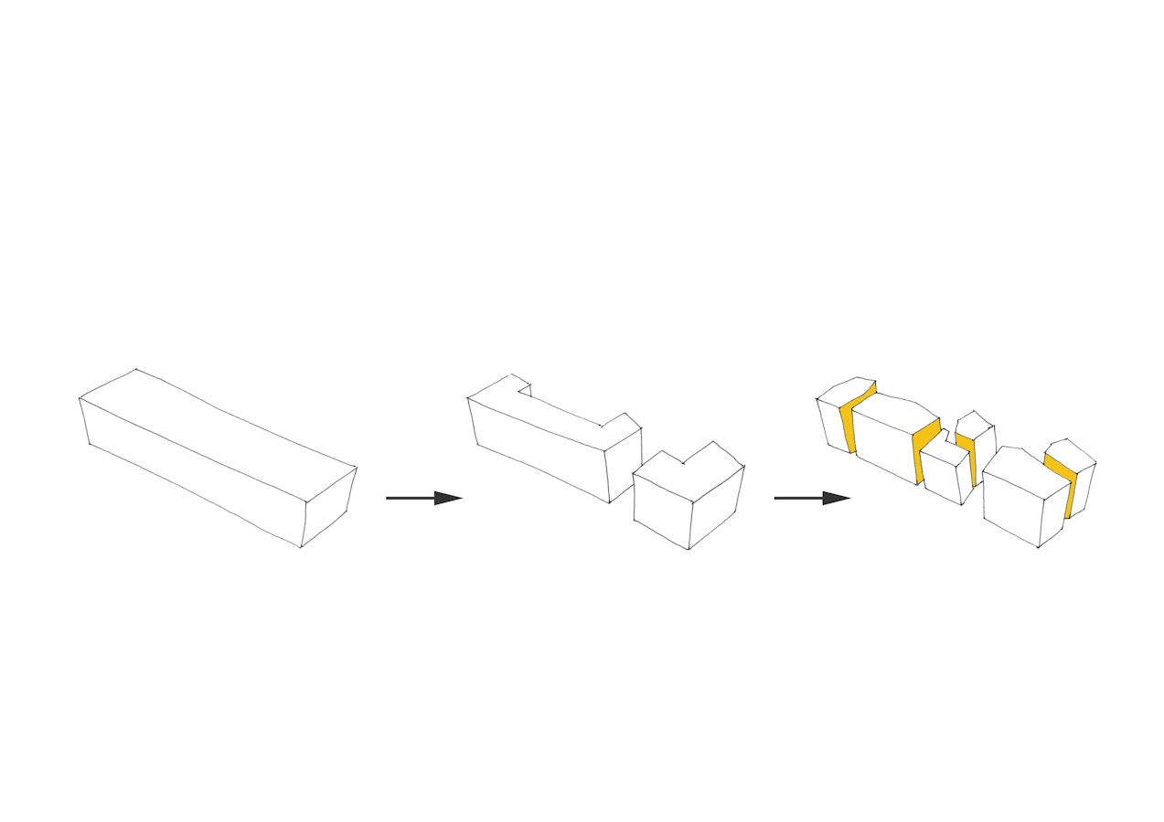Le thème de la faille "traverse les échelles" du projet ; elle se déploie de l’échelle urbaine jusqu’à l’échelle architecturale.