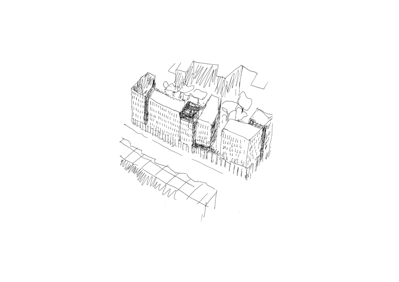 Nous ménageons ainsi une série de retraits verticaux qui fractionnent l’ensemble et proposent des espaces partagés, baignés de lumière naturelle.