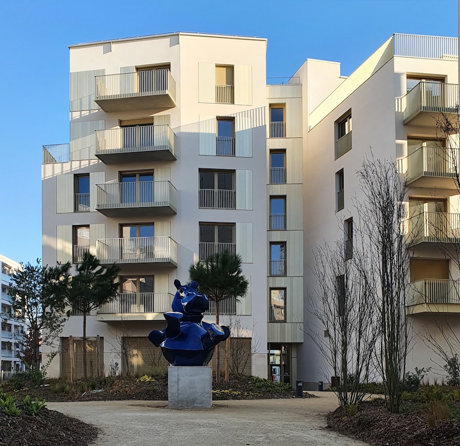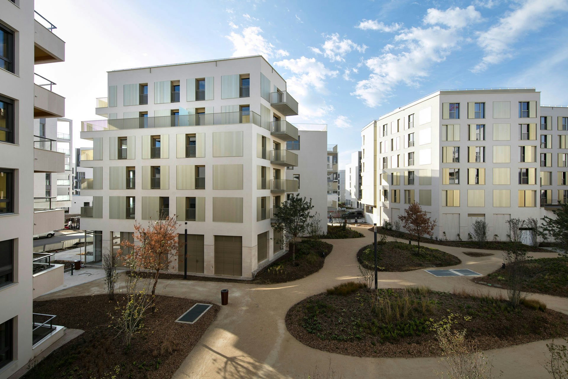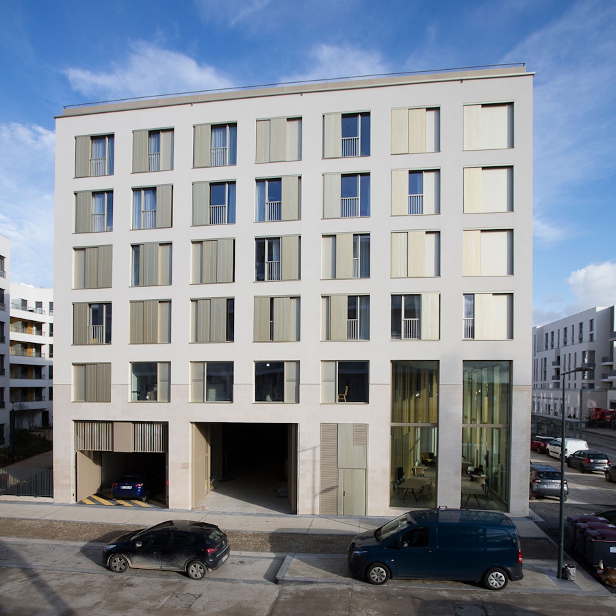Des archétypes classiques sont ici revisites : Fenêtres en hauteur, a l’échelle de l’homme, permettant de maintenir un contact visuel entre l’intérieur du logement et le sol de la ville. Des façades minérales, pérennes et robustes, aux dominantes claires, typiques "ile de France".