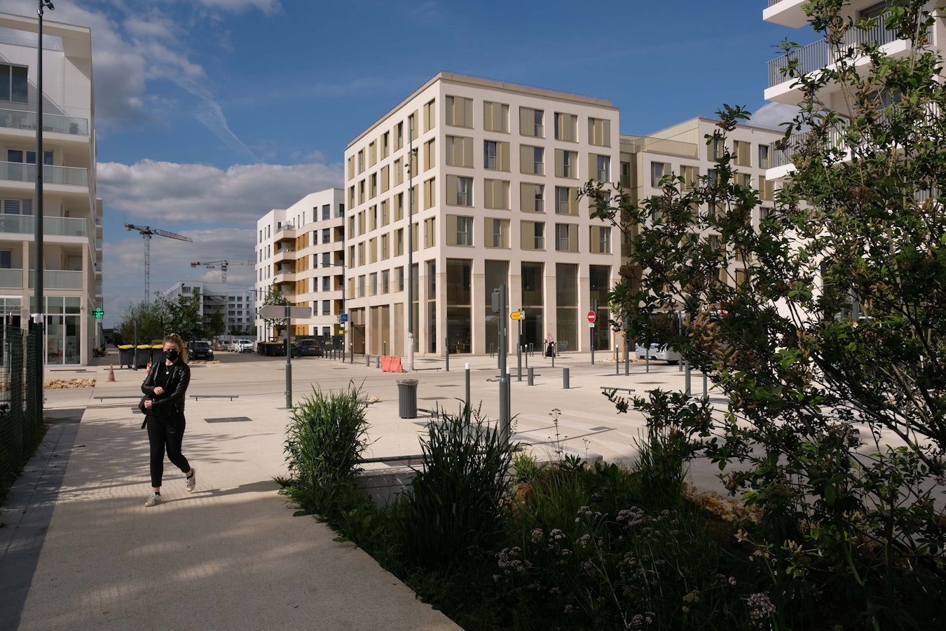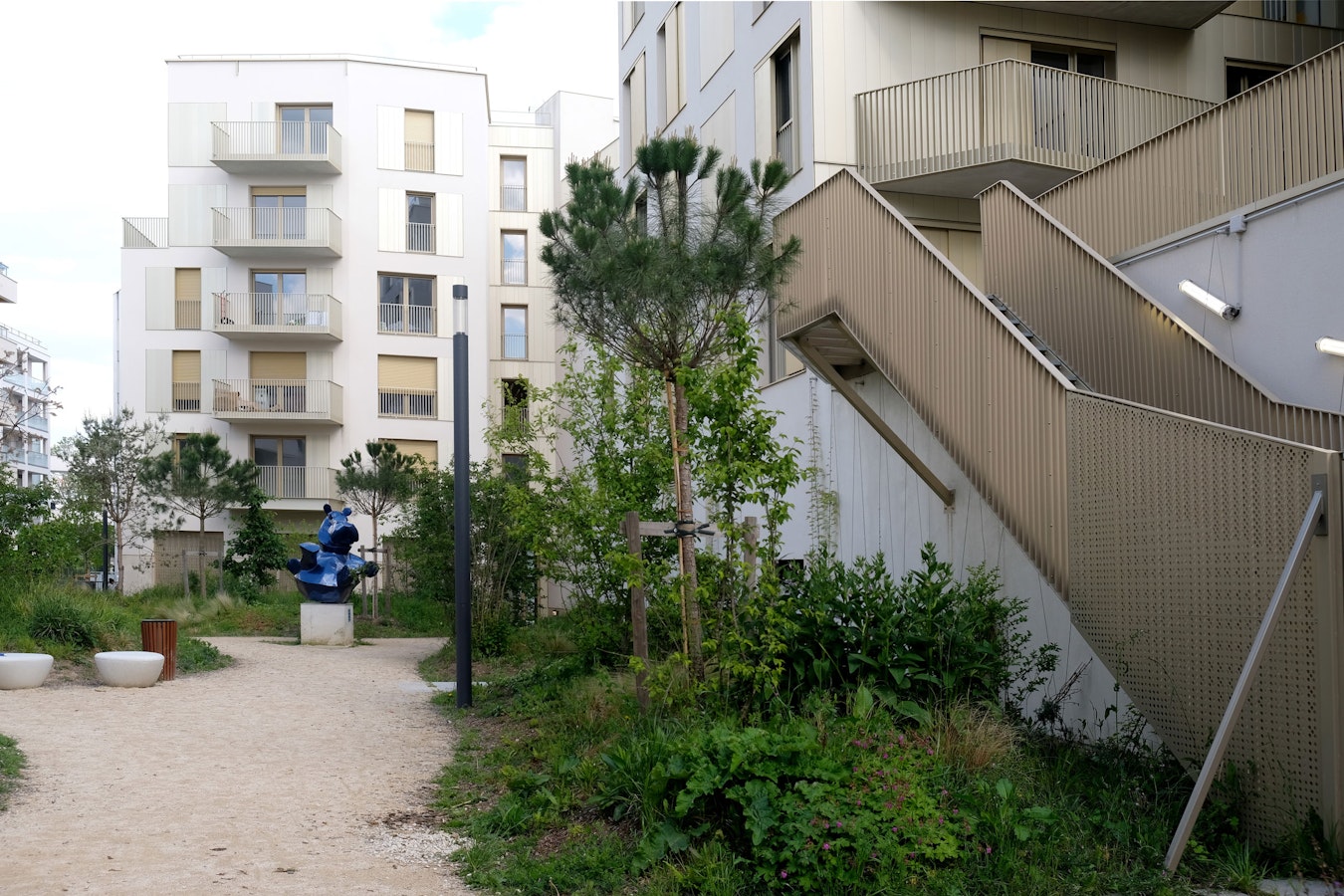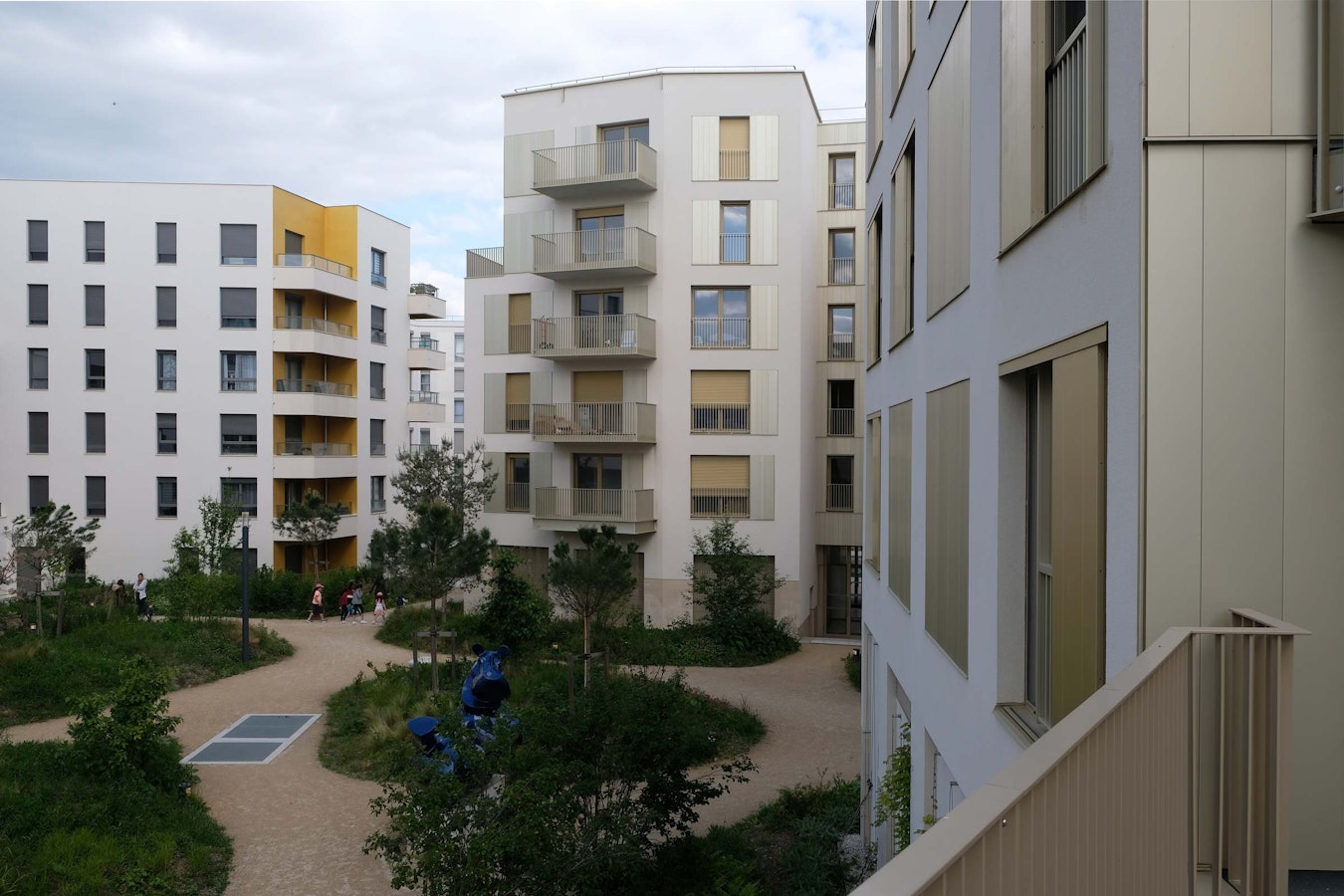 Des archétypes classiques sont ici revisites : Fenêtres en hauteur, a l’échelle de l’homme, permettant de maintenir un contact visuel entre l’intérieur du logement et le sol de la ville. Des façades minérales, pérennes et robustes, aux dominantes claires, typiques "ile de France".