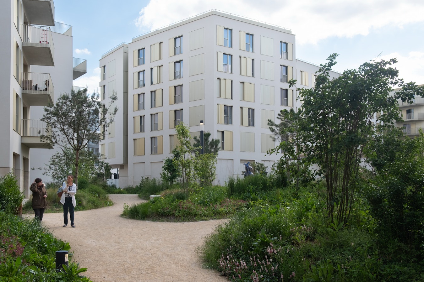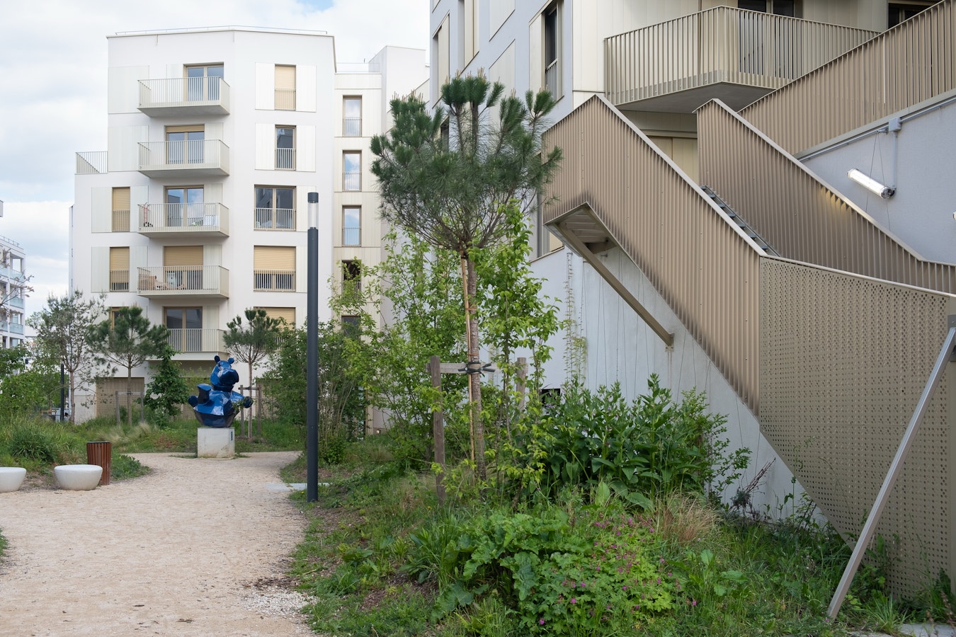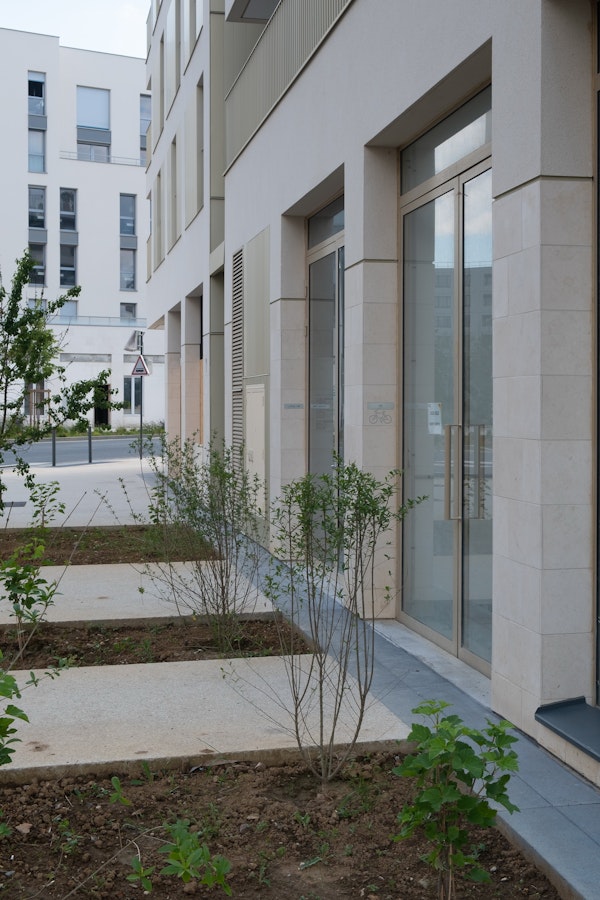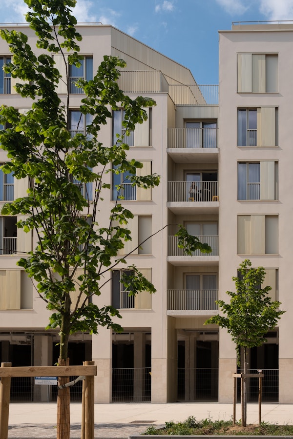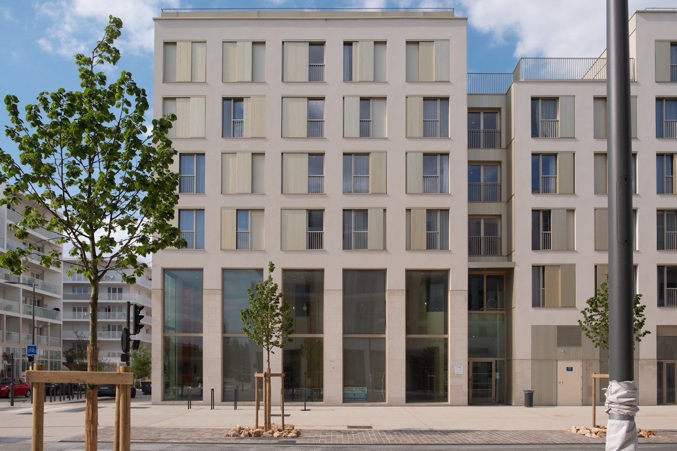 Des archétypes classiques sont ici revisites : Fenêtres en hauteur, a l’échelle de l’homme, permettant de maintenir un contact visuel entre l’intérieur du logement et le sol de la ville. Des façades minérales, pérennes et robustes, aux dominantes claires, typiques "ile de France".