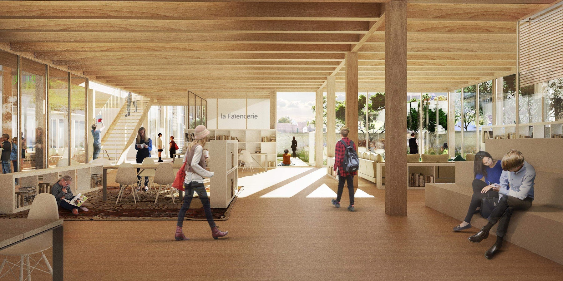 Le pôle culturel n’est pas bavard car il est précieux. La structure et les revêtements convoquent une matière noble : le bois. Le projet est vertueux. Il s’adresse à tous et se veut porteur d’une pédagogie contemporaine liée à la protection de l’environnement. Par ailleurs, dans l’univers relativement minéral de ce quartier de Chambly, le bois distingue l’édifice culturel.