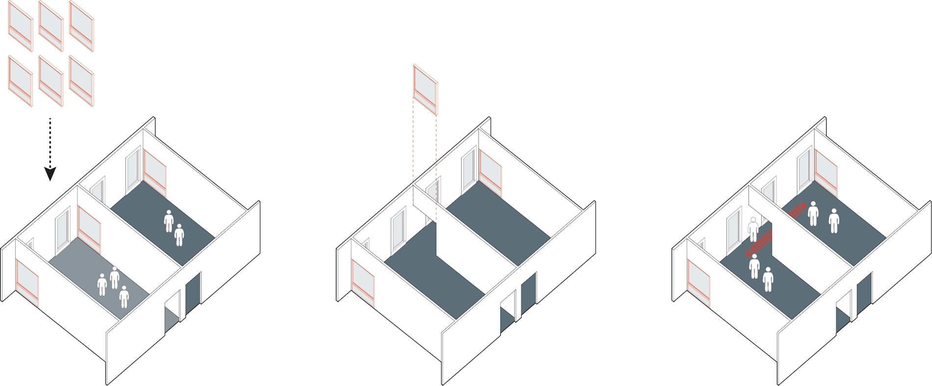 Le projet bascule : autrefois sombre et fermé, l’espace central devient le cœur vivant du projet ; il gagne des nouvelles ouvertures, de nouvelles perspectives, et de belles profondeurs spatiales.