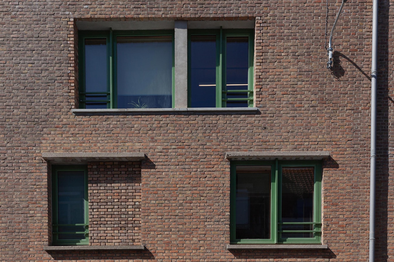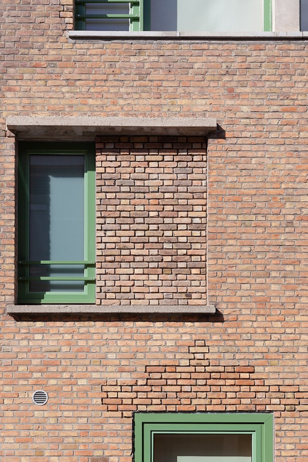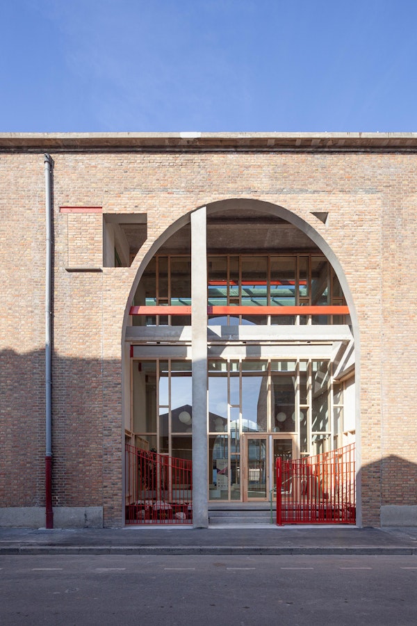 Par sa longueur, son absence d’ouverture et de modénature, le mutisme des briques, une structure poteau-poutre-béton, ce bâtiment pourrait apparaître banal.
