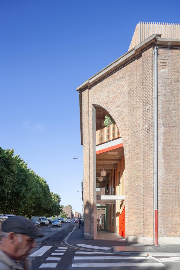 Pourtant, la très grande hauteur sous plafond du rez-de-chaussée, les poutres bétons à double pente, la brique jaune extérieure, la position stratégique à l’angle des rues et face au tout nouveau parc Danel, également ses dimensions « toutes en longueur », sont autant d’éléments qui définissent le caractère remarquable de ce bâtiment à fort potentiel.